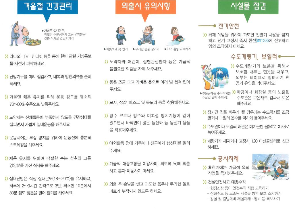 아래의 내용 확인하시고 건강 유의하시고, 한파에 대비하시기 바랍니다^^