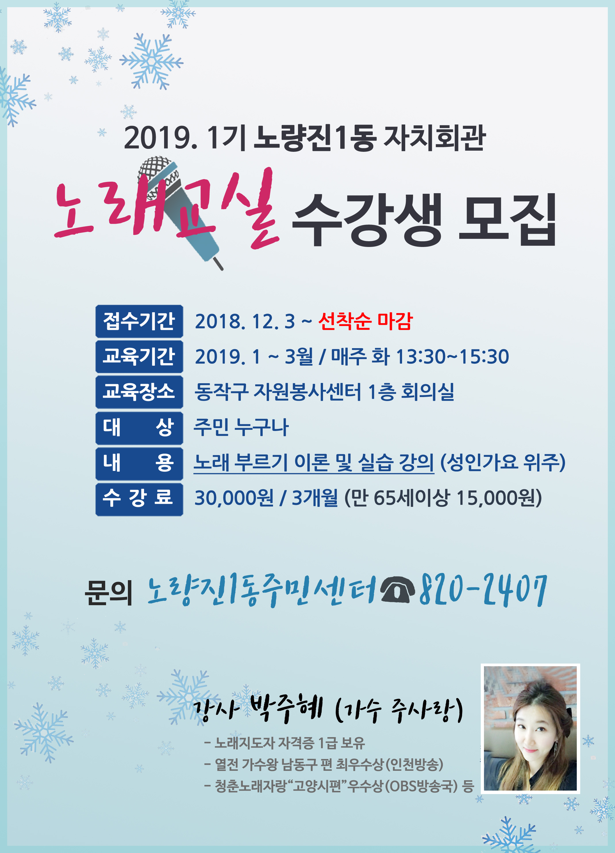 2019년 1기 자치회관 노래교실 수강생 모집 안내