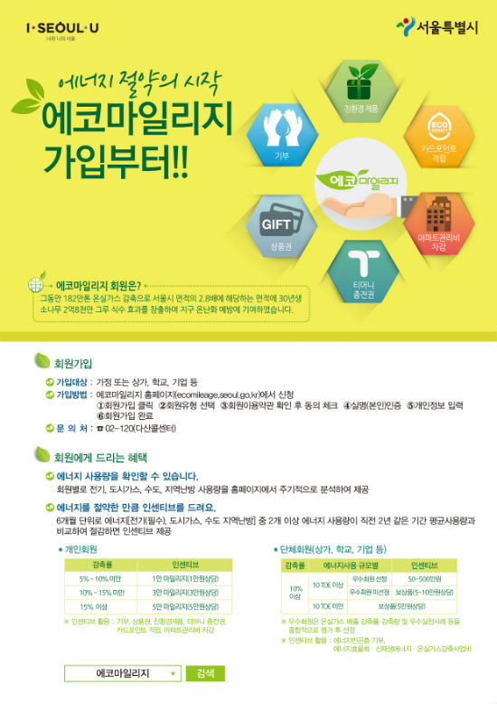 지금 에코마일리지에 가입하시면 에너지사용량(전기, 수도, 도시가스)을 6개월 주기로 집계하여