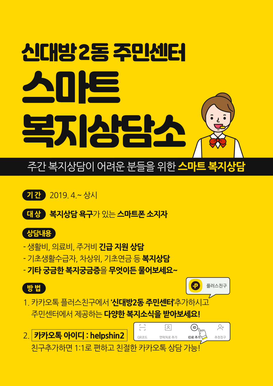 카카오톡으로 언제든지 편하게 복지상담을 하실 수 있는 스마트 복지상담소를 알려드립니다