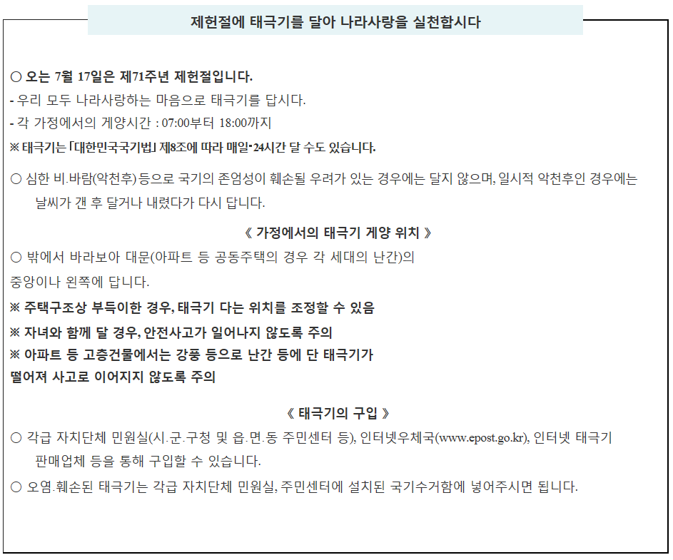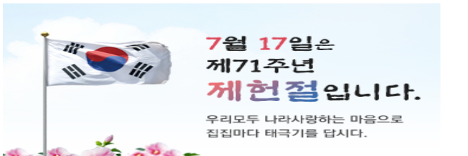 제71주년 제헌절 태극기달기 운동에 모두모두 참여합시다!