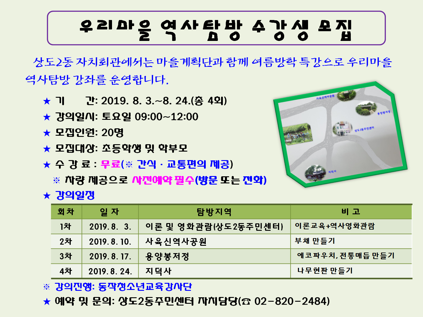 「초등학생 여름방학특강」 우리마을 역사탐방 수강생 모집