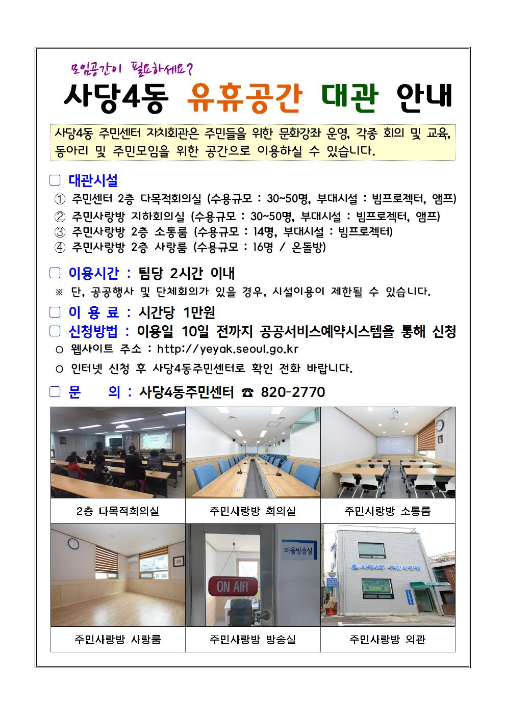 [사당4동 유휴공간 대관] 모임공간을 빌려드립니다.