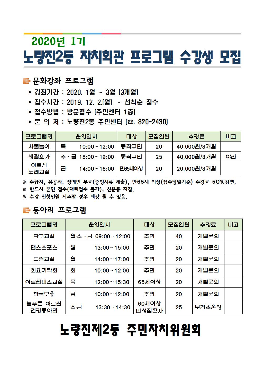 2020년 1분기 노량진2동 자치회관 프로그램 수강 접수 안내