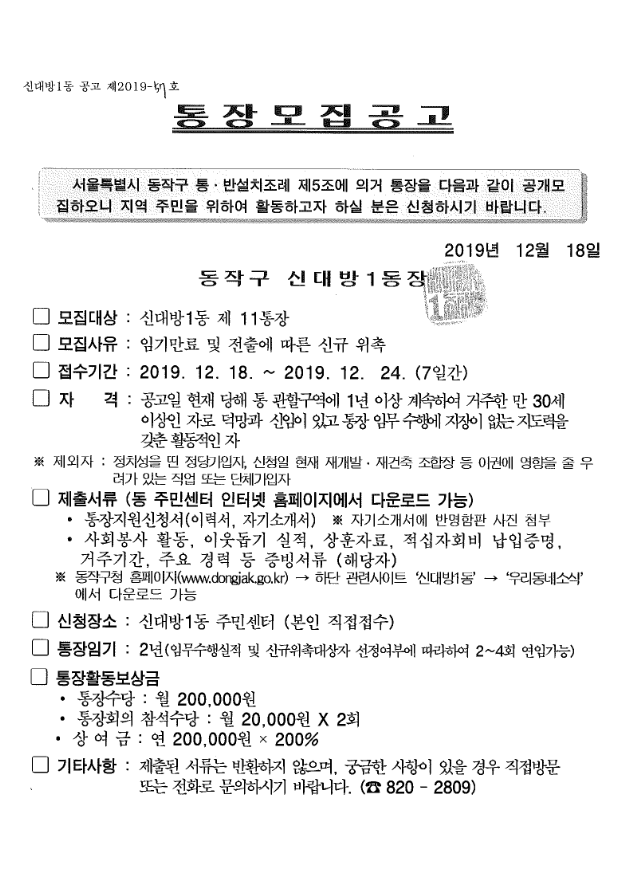 제 11통 통장모집 공고 (3차)