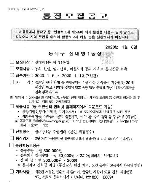제 11통 통장모집 공고 (4차)