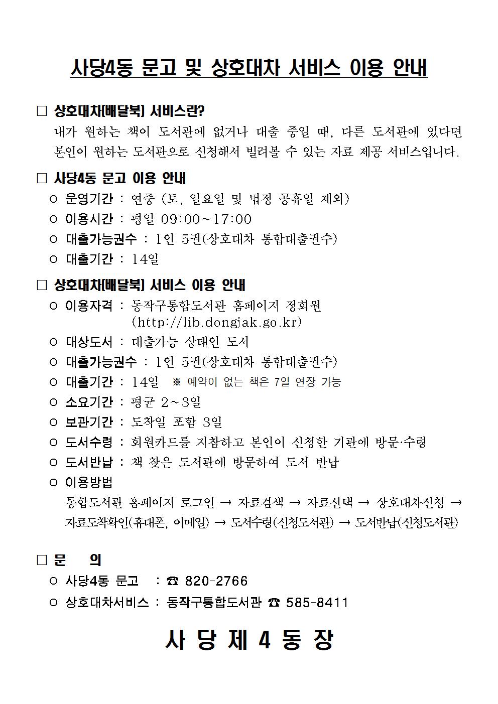 사당4동 문고 및 상호대차 서비스 이용 안내