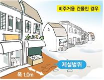 · 비주거용 건축물인 경우 : 당해 건축물의 대지경계선으로부터 1m까지