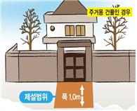 · 주거용 건축물의 경우 : 당해 건축물의 주출입구 부분의 대지경계선으로부터 1m까지