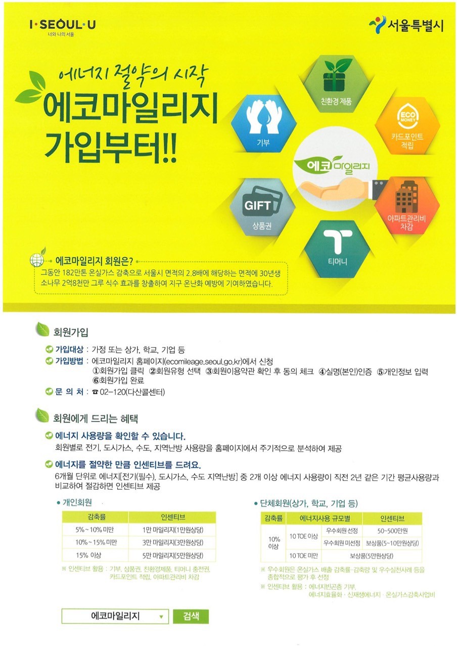 에코마일리지 가입하시고 에너지 절약하셔서 인센티브 받으세요!