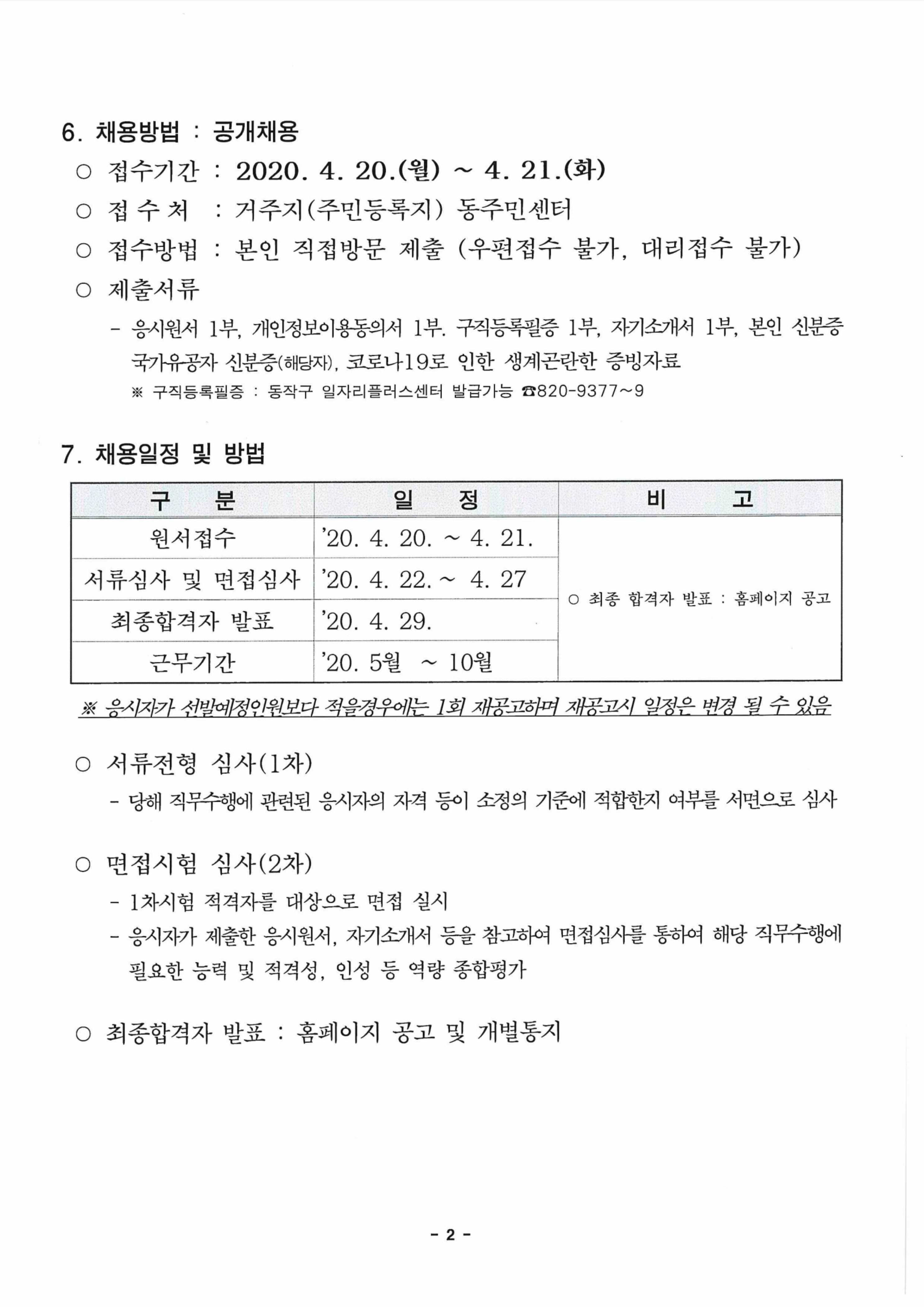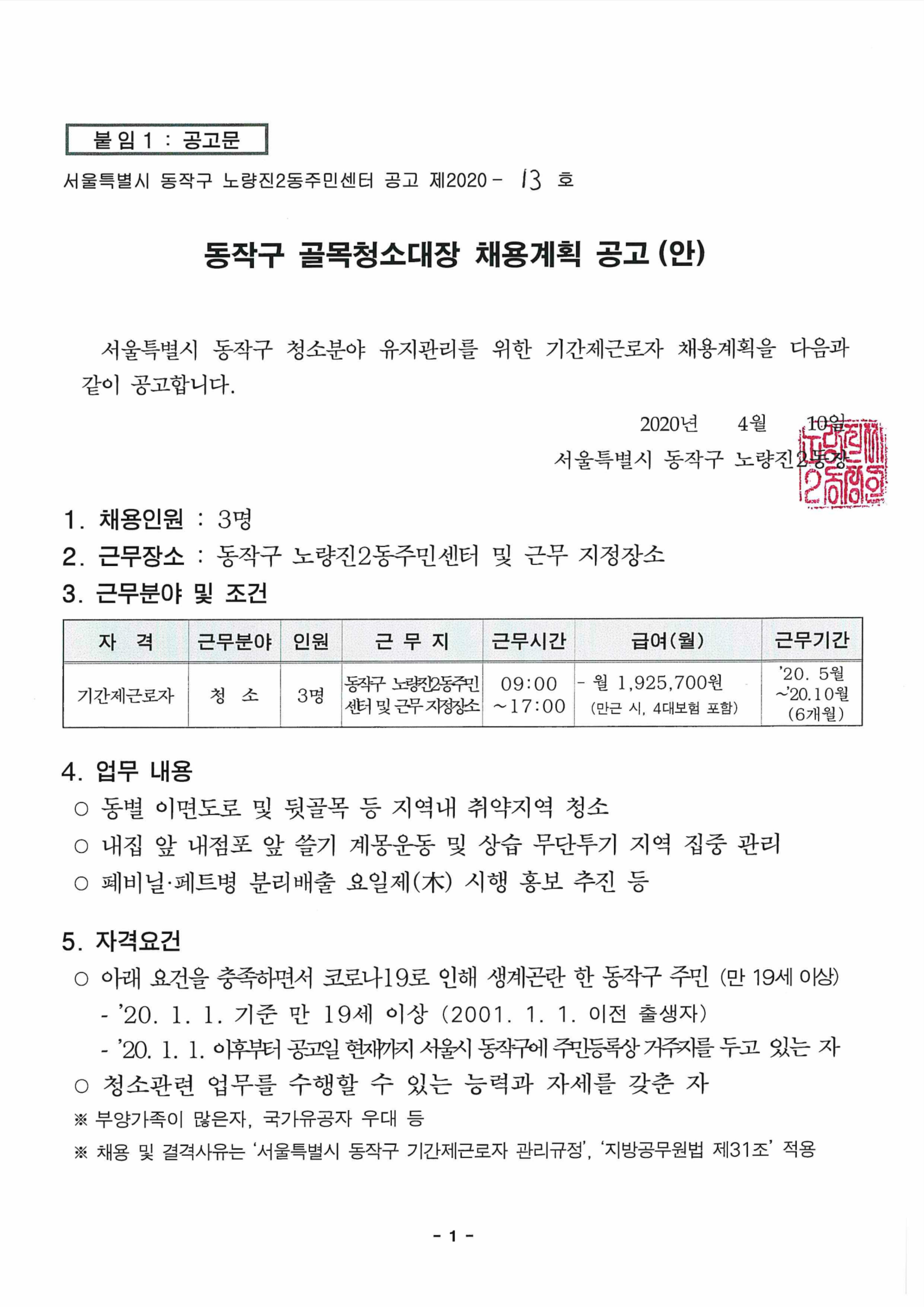 동작구 노량진2동 골목청소대장 채용계획 공고