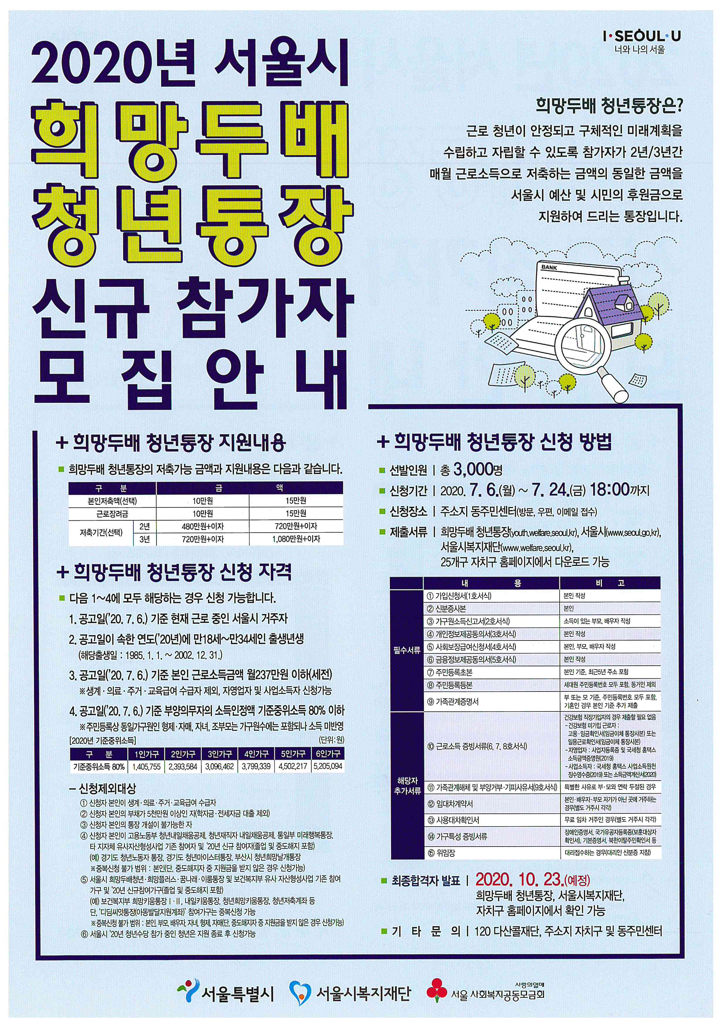청년의 희망가득한 미래를 위해! 희망두배 청년통장 신규가입자 모집!