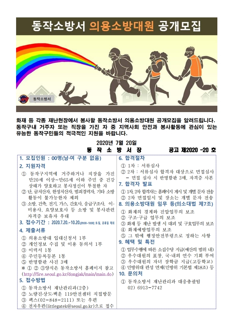 2020년 상반기 의용소방대원 모집 공고