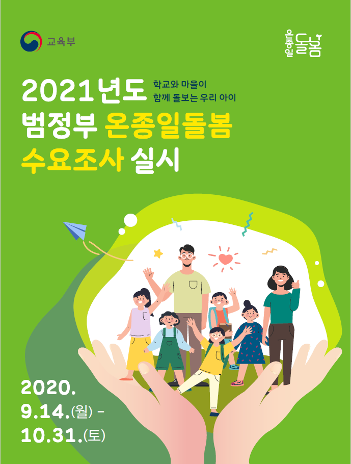 관계 중앙부처 합동으로 2021년도 범정부 온종일돌봄 수요조사를 실시하오니,