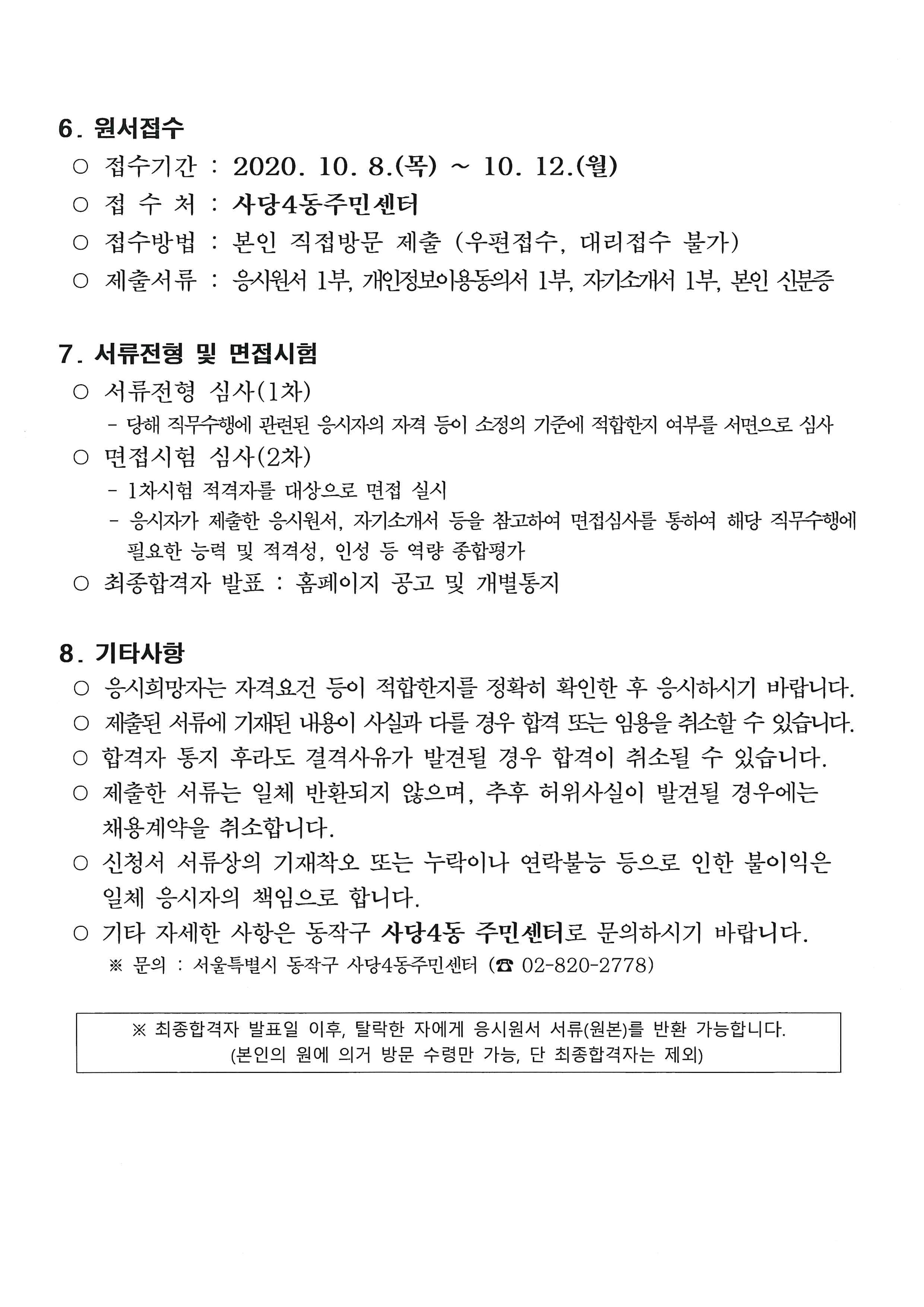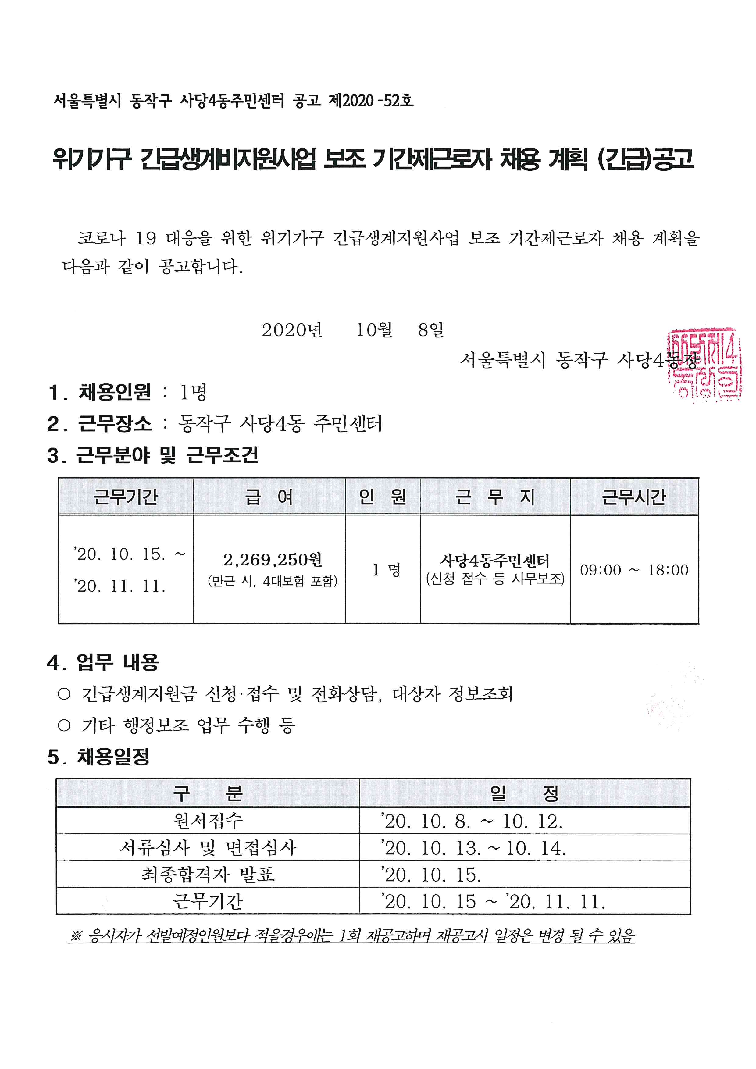 위기가구 긴급생계비지원사업 보조기간제 근로자 채용 계획 공고