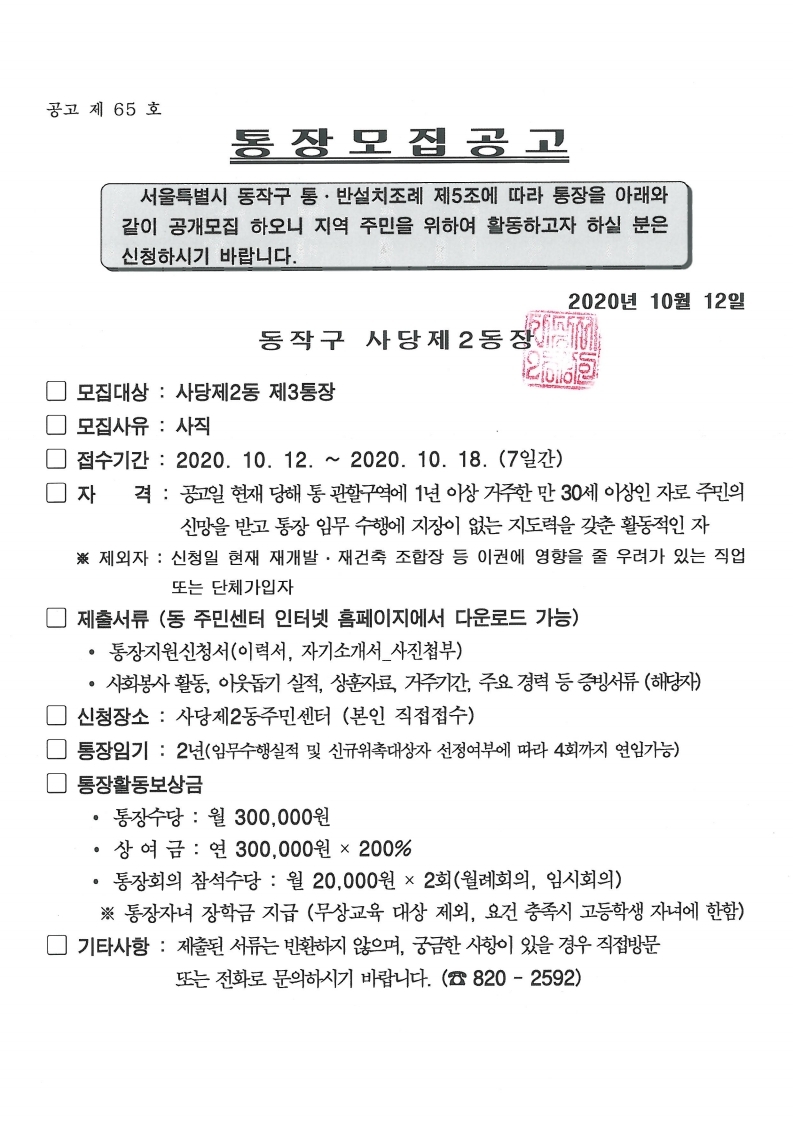 통장 모집 공고(3통)