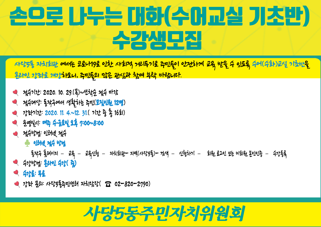 손으로 나누는 대화(사당5동 수어교실 기초반)