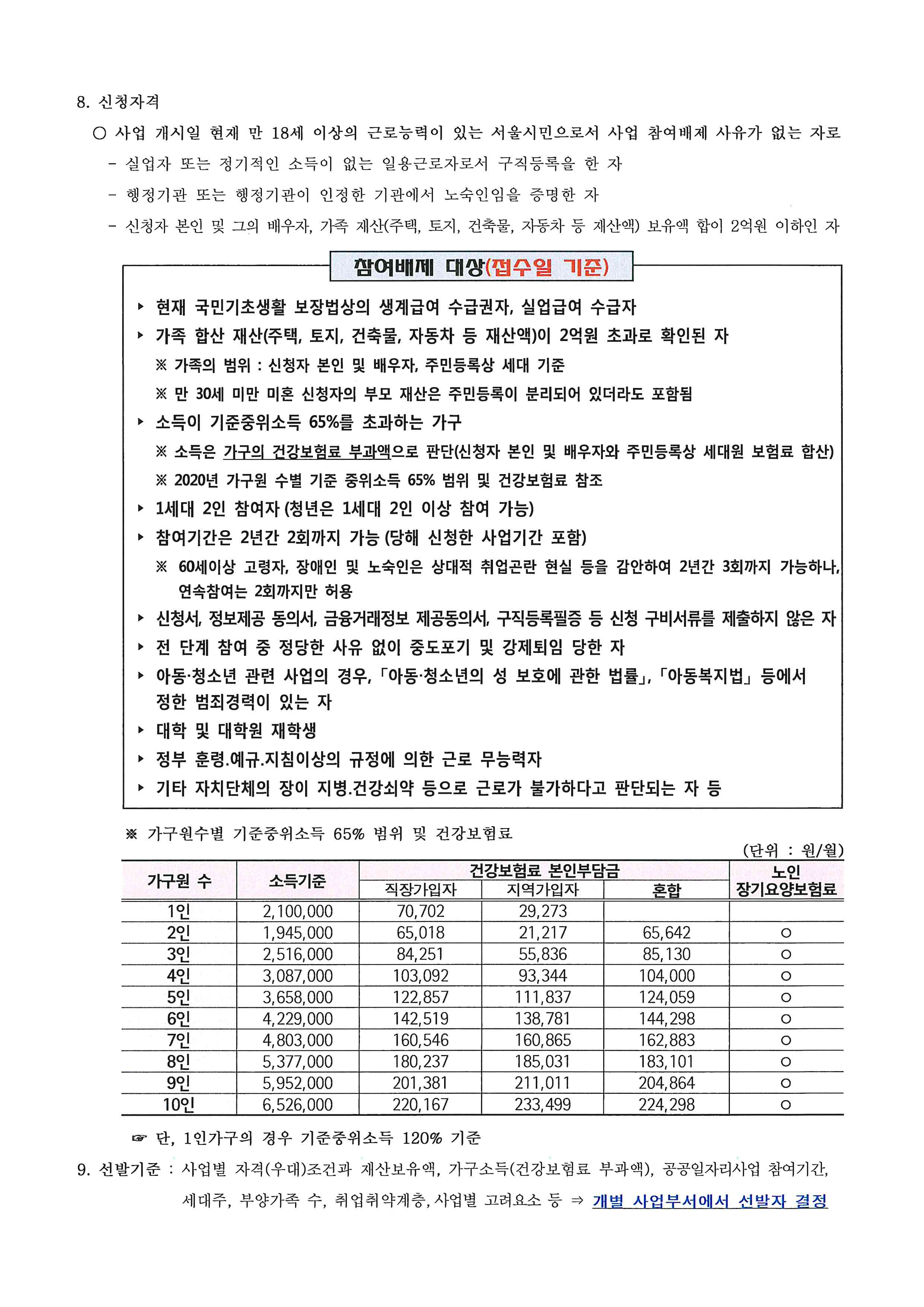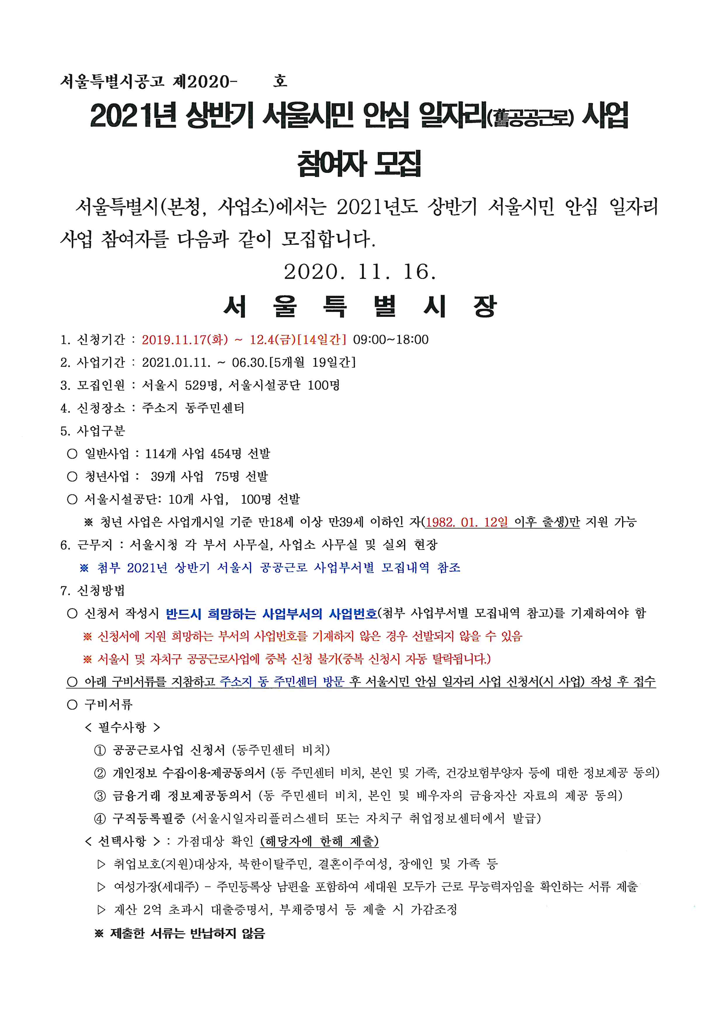 [서울시] 2021년 상반기 서울시민 안심 일자리사업 모집 공고