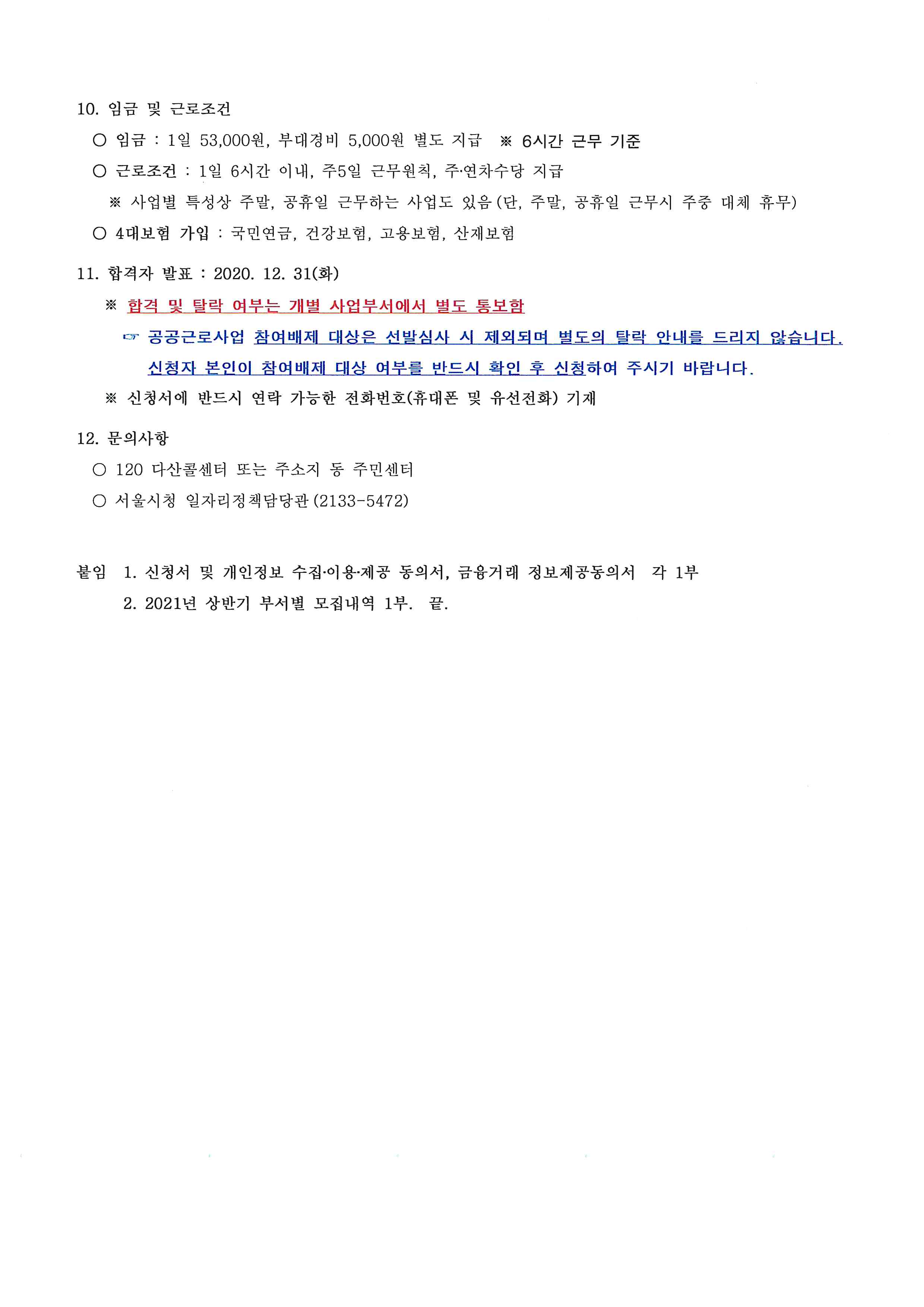 동작구와 서울시 2021년 상반기 서울시민 안심 일자리사업 모집을 병행으로 진행합니다.