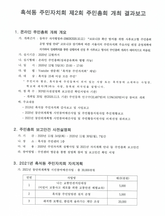 흑석동 주민자치회 제2회 주민총회 개최 결과보고