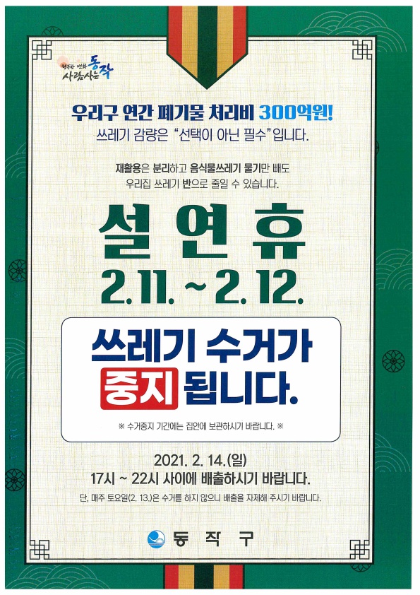 2021. 설 연휴 중 쓰레기 수거중지 및 배출 안내