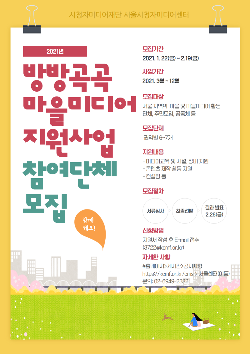 시청자미디어재단 서울센터 방방곡곡 마을공동체 미디어교육 지원 신청(모집) 안내