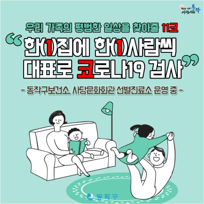 한가구 한명씩 코로나 검사받고 우리집은 청정구역으로 만들어요.