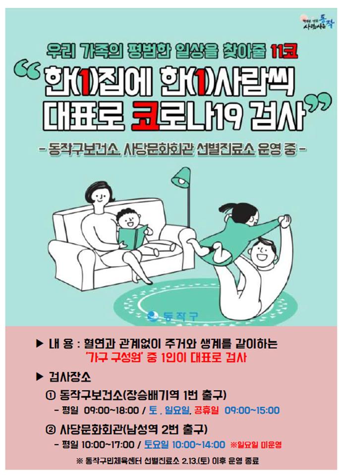 한 집 한 사람씩 대표로 코로나19 검사 받으세요!