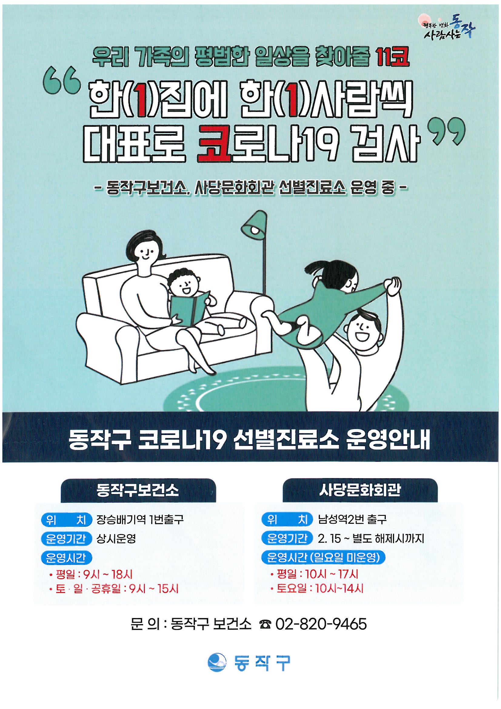 한집에 한사람씩 대표로 코로나19 검사해서 안전한 흑석 만들어요~~~