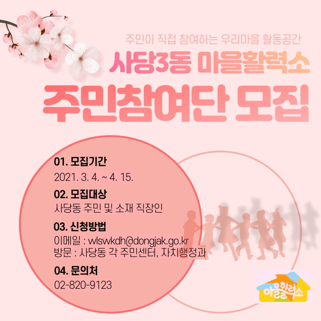 사당3동 마을활력소 주민참여단 추가모집 관련 협조 요청