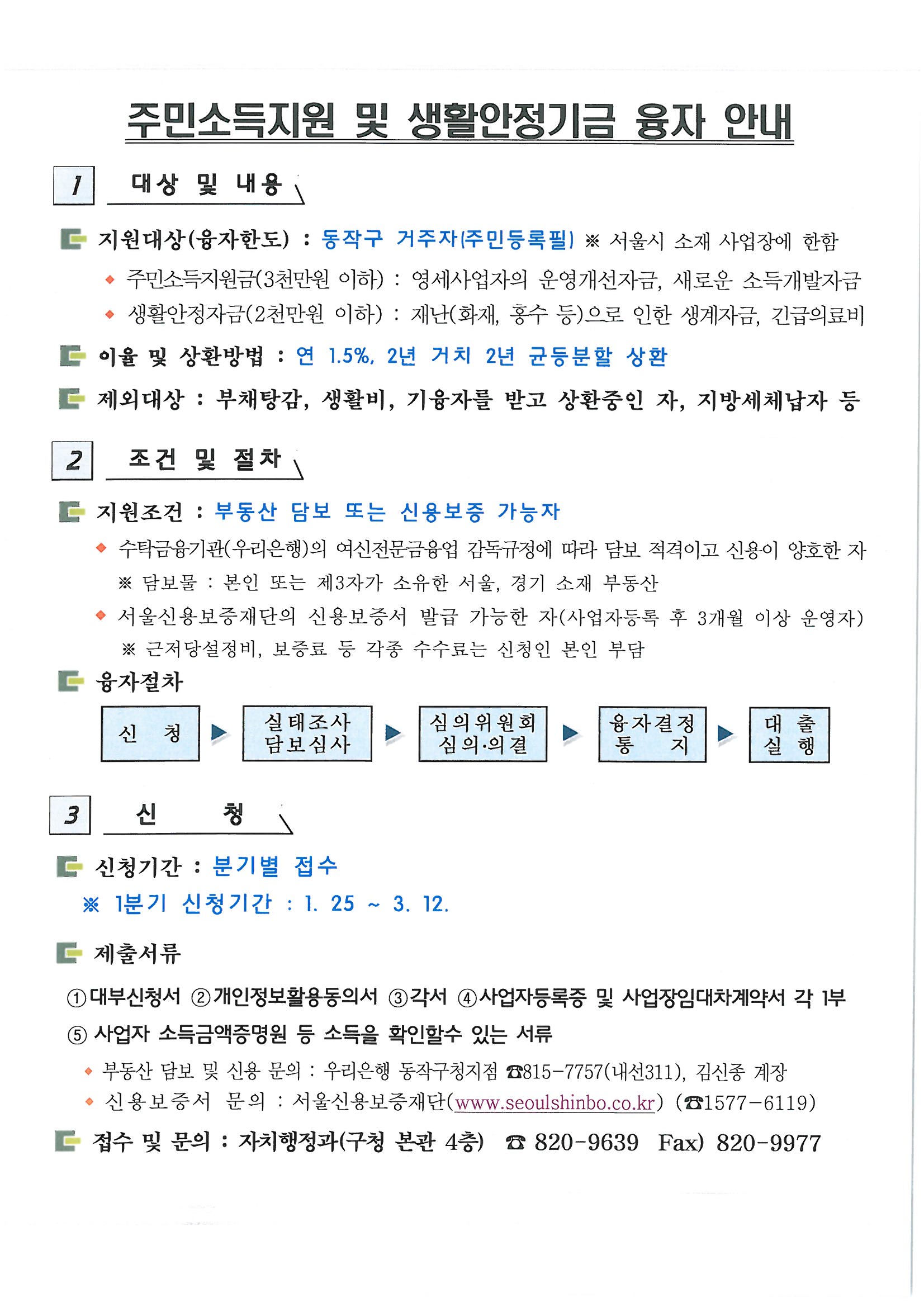 주민소득지원 및 생활안전기금 융자안내 (1분기 신청접수기간 1.25 ~ 3.12)