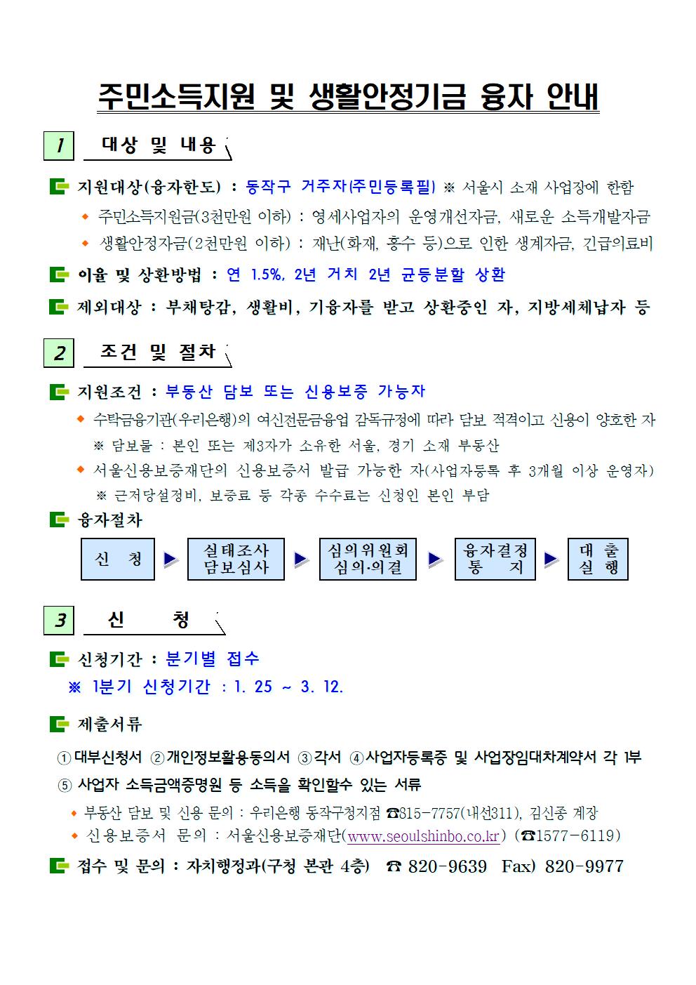 주민소득지원 및 생활안정기금 융자 연장 안내