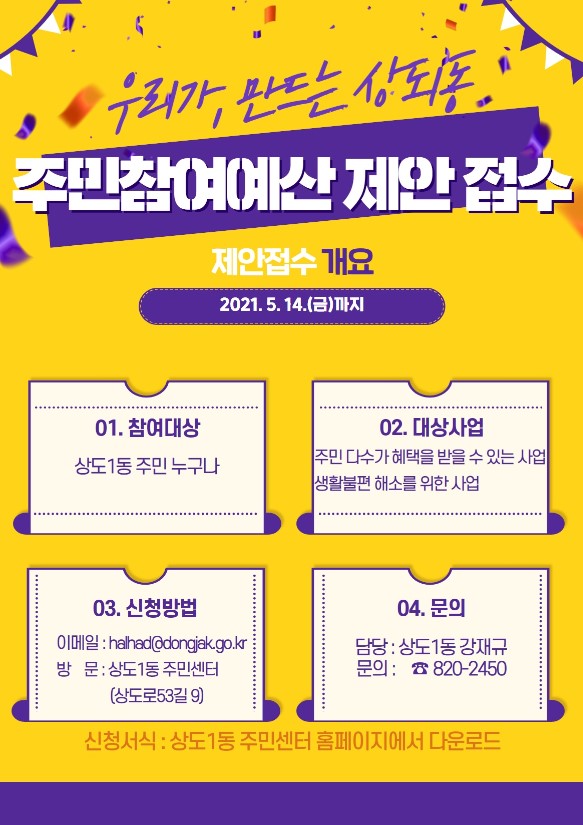2021년 동작구 주민참여예산 제안사업 신청 안내