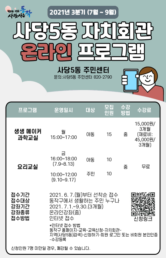 2021. 3기 자치회관 온라인 강좌 수강생 모집
