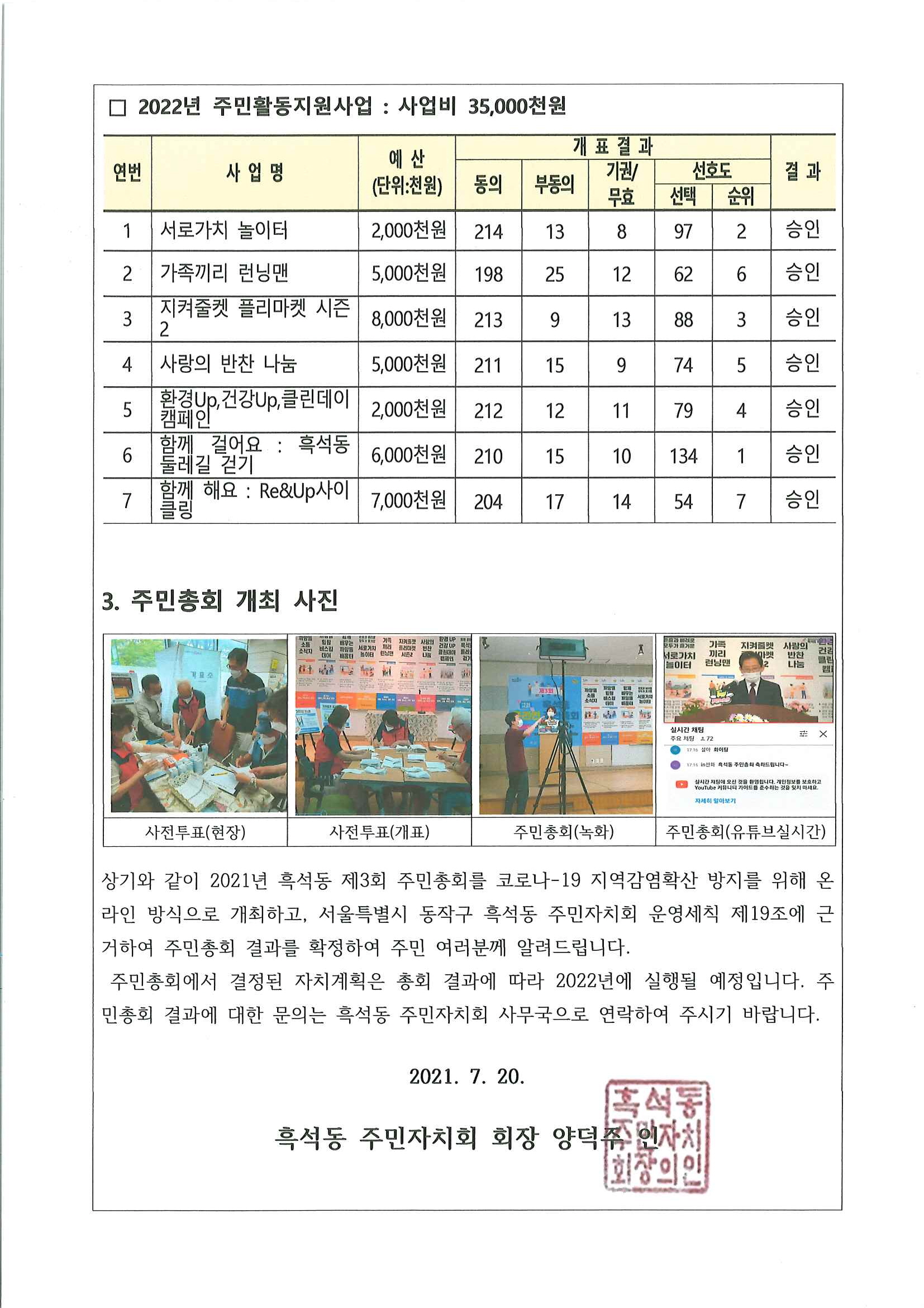 흑석동 제3회 온라인 주민총회 개최결과 보고