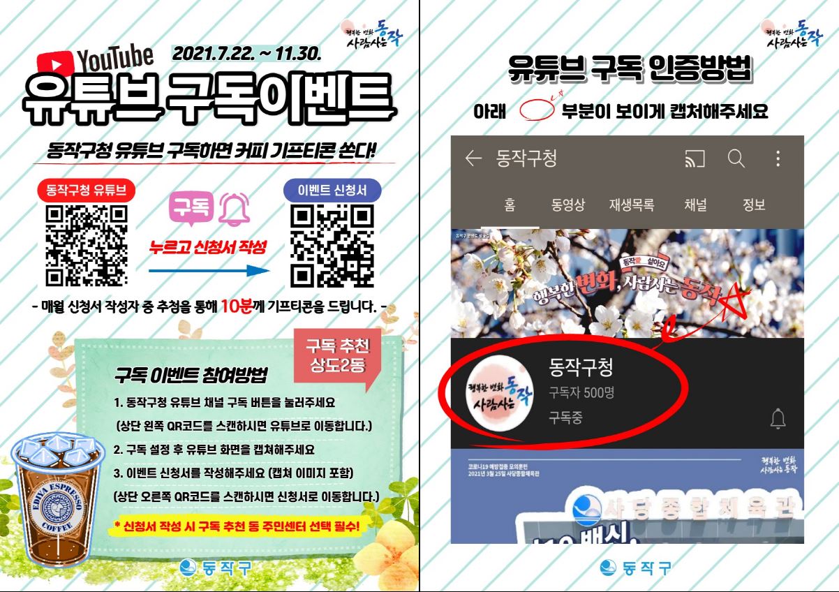 동작구청 유튜브 구독하시고 커피 기프티콘 받아가세요 ~ !