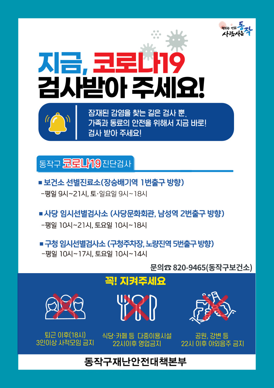상도3동 주민분들도 정부의 사회적 거리두기 조치를 숙지하고 따르며