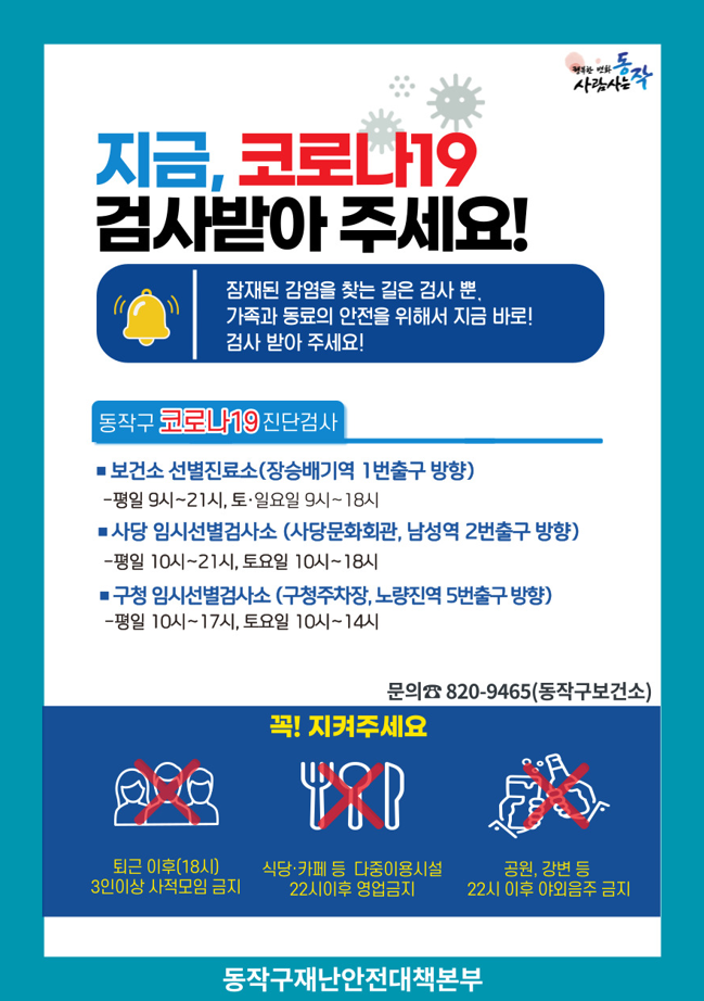 코로나 19 선제검사 받아주세요 !