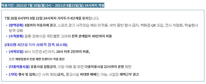 - (사적모임) 18시 이전 4인까지, 18시 이후 2인까지 허용
