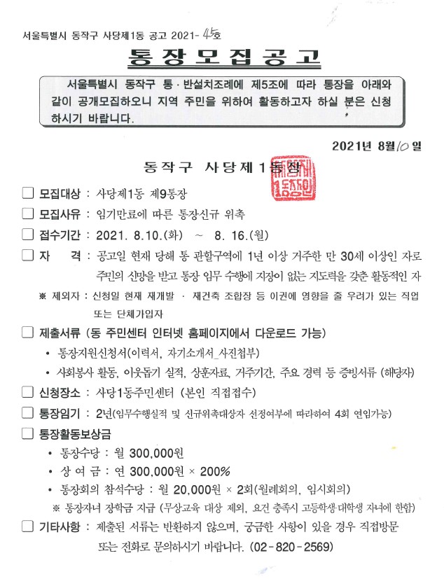 통장모집 재공고(9통)