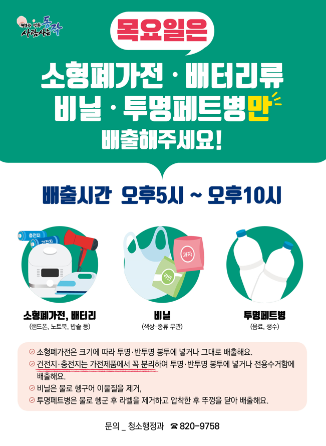 소형폐가전, 전지류 분리배출 요일제 시범 운영