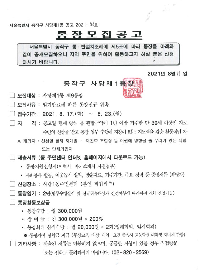 통장 모집 재공고(9통)