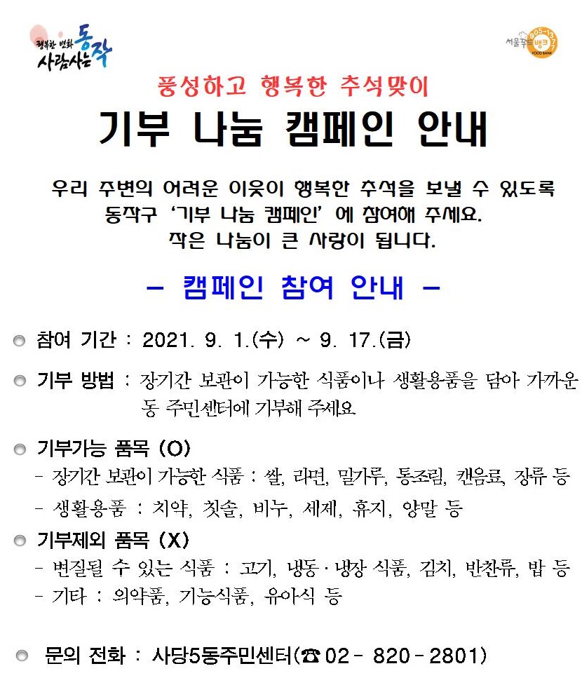 2021년 추석 명절 맞이 「기부 나눔 캠페인」 안내(9.1 ~ 9.17)