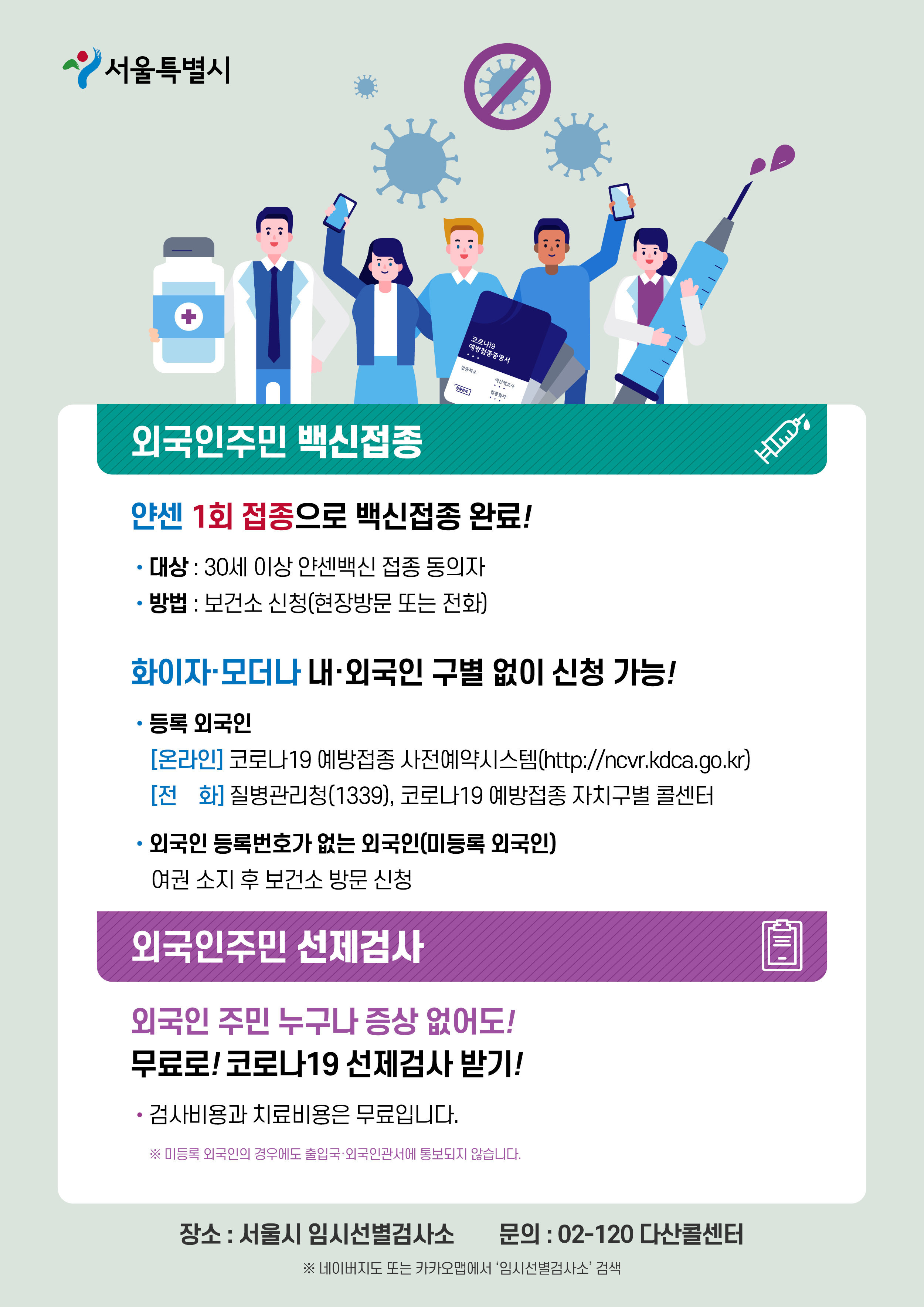외국인 주민 백신접종 및 선제검사 안내(한글)