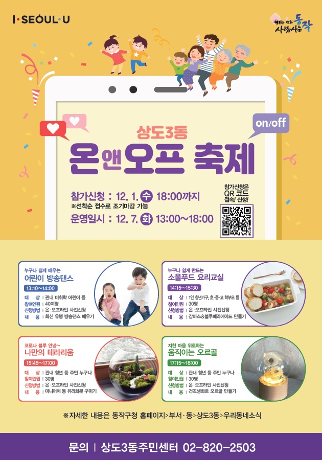12월 7일(화) 13:00~ 18:00 상도3동 온앤오프 축제를 개최합니다.