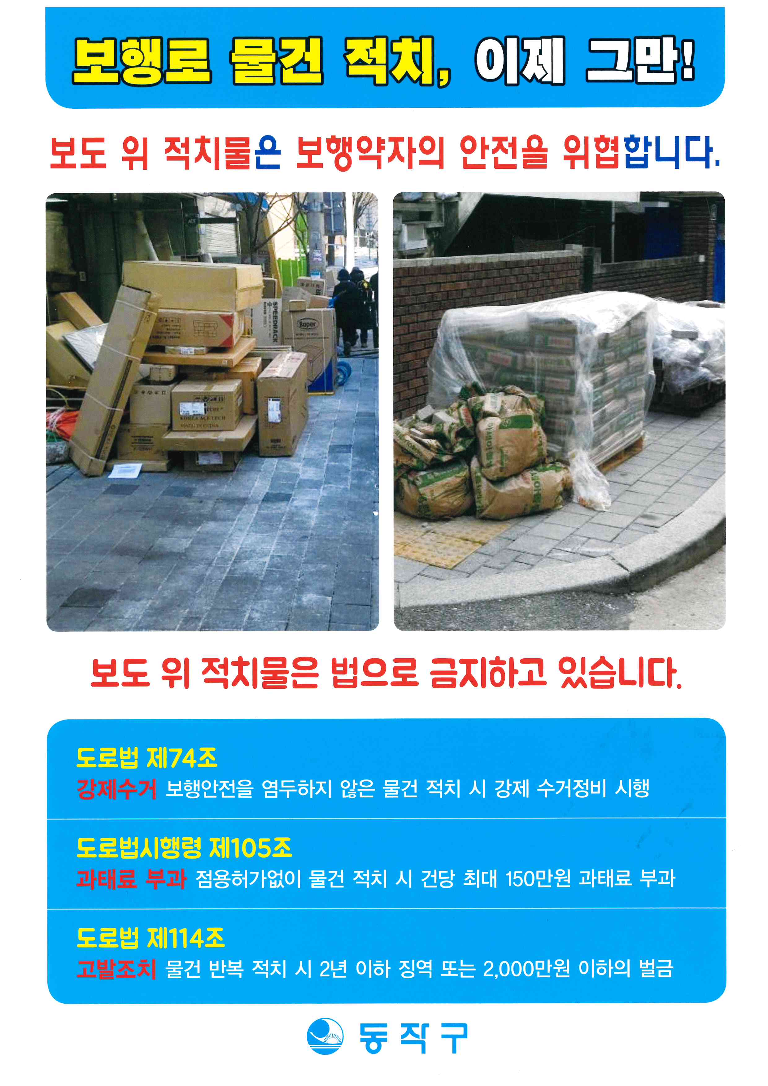 보도 위 적치물 보행약자의 안전을 위협합니다.