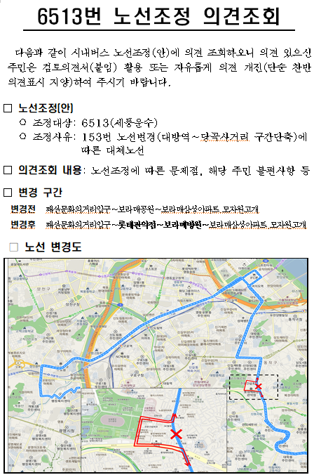 (6513번)시내버스 노선조정(안) 의견조회