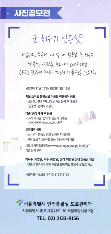 내 집, 내 점포 앞 눈 치우기 "함께 치우는 눈으로 더 행복해지는 우리마을"