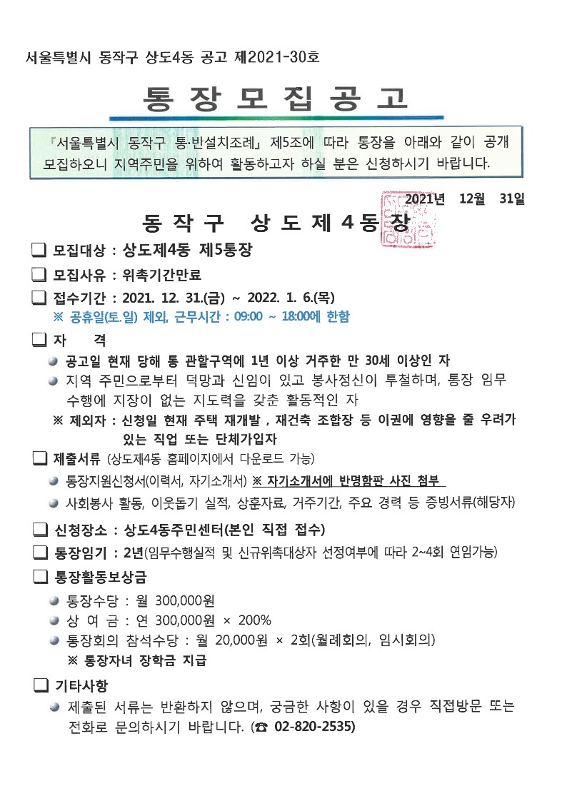 통장공개모집공고(5통)