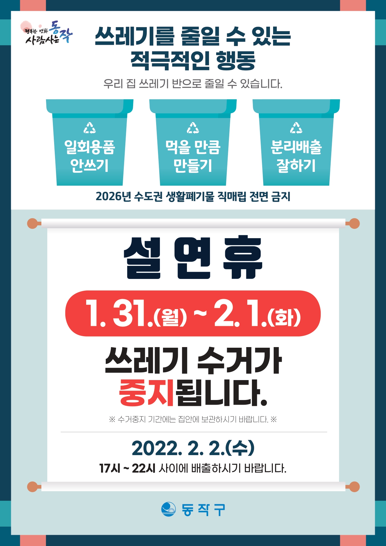 2022. 설 연휴 쓰레기 수거중지 기간 [1.31.(월)~2.1(화)] 안내